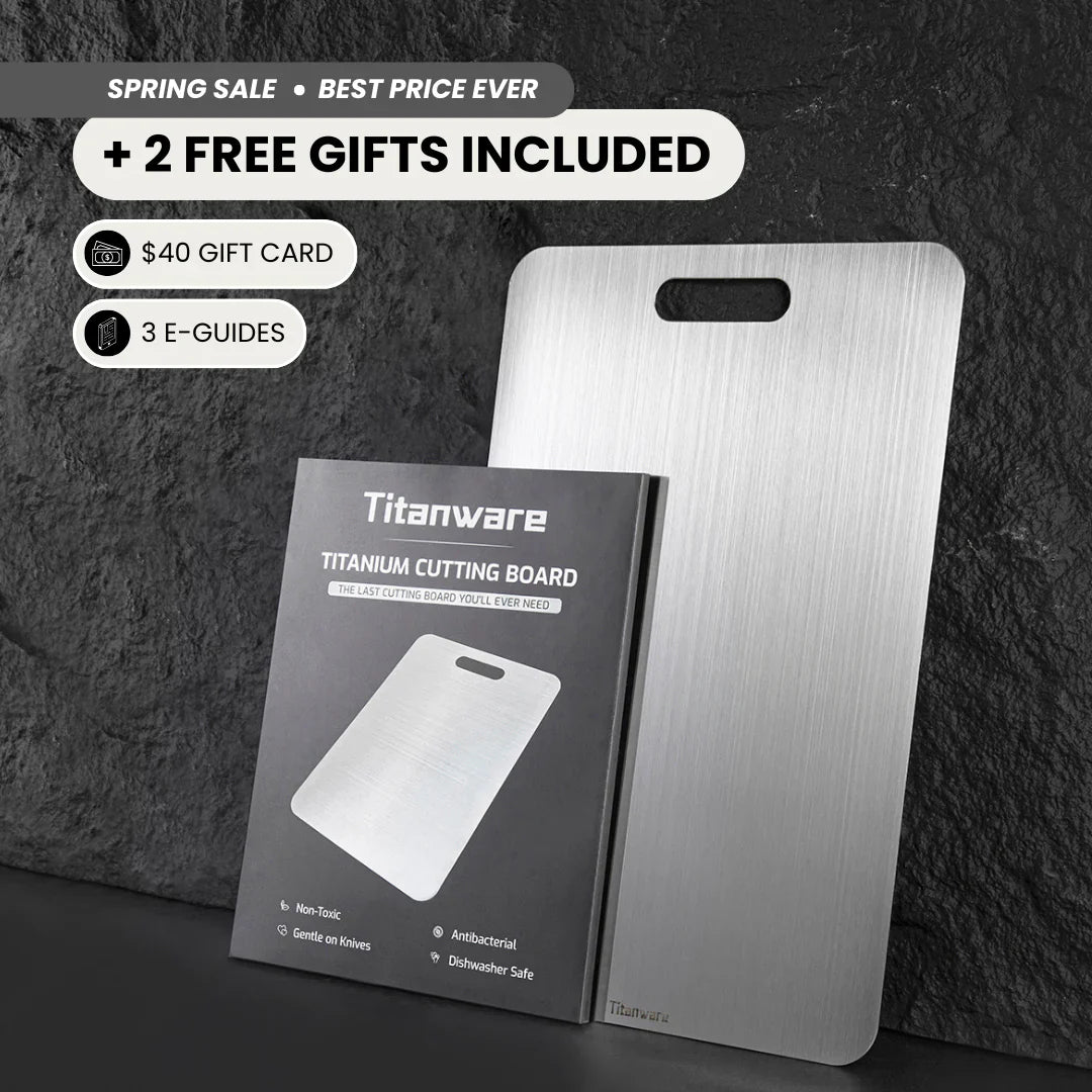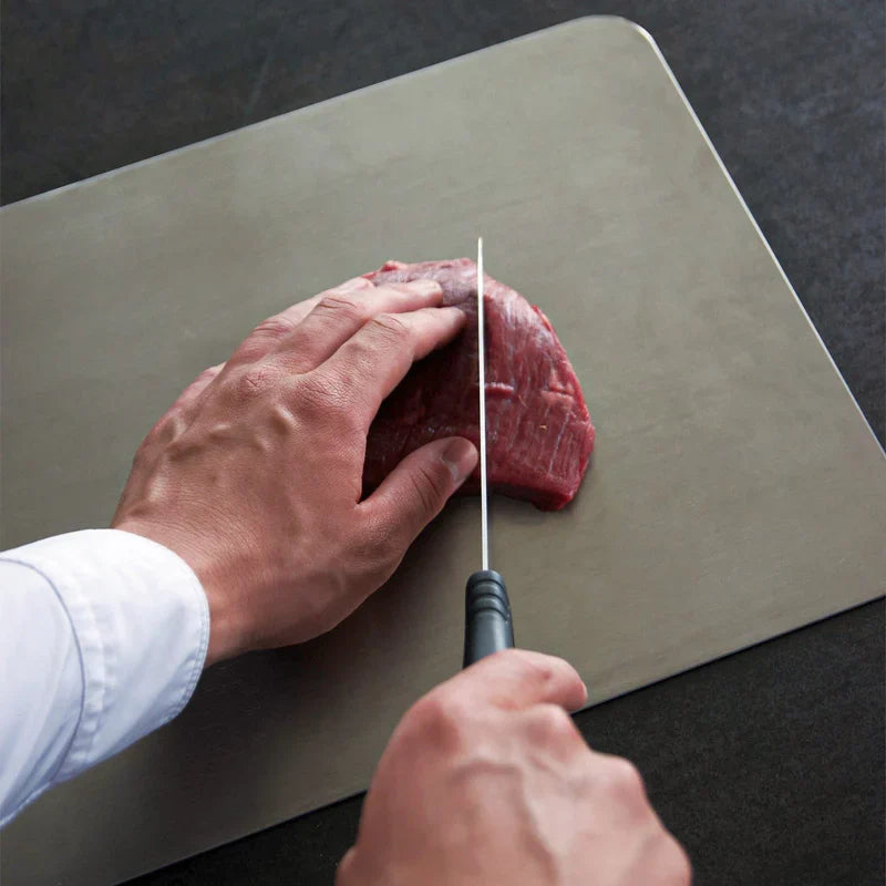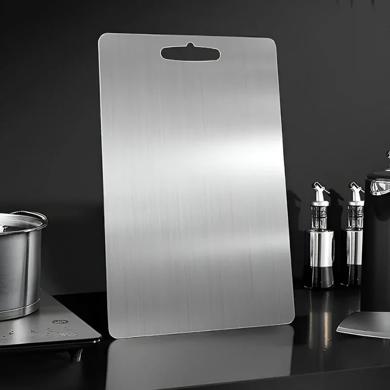 Unlike traditional wooden or plastic boards, the non-porous titanium surface resists moisture, preventing bacterial growth and odor retention. A healthier way to prep your food!