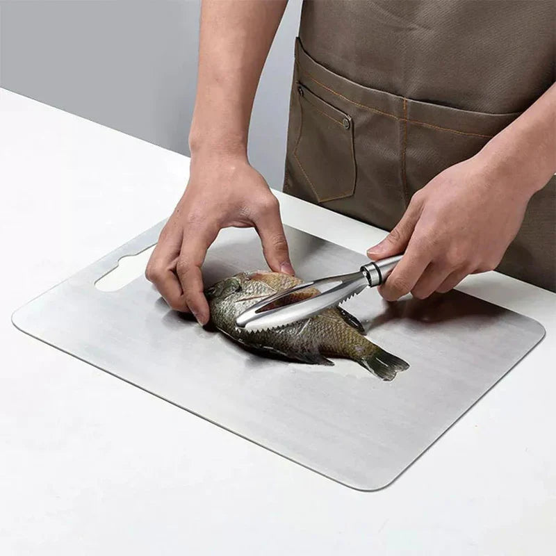 Crafted with a premium food-grade titanium coating, this board is highly resistant to scratches, corrosion, and stains – perfect for long-lasting use.